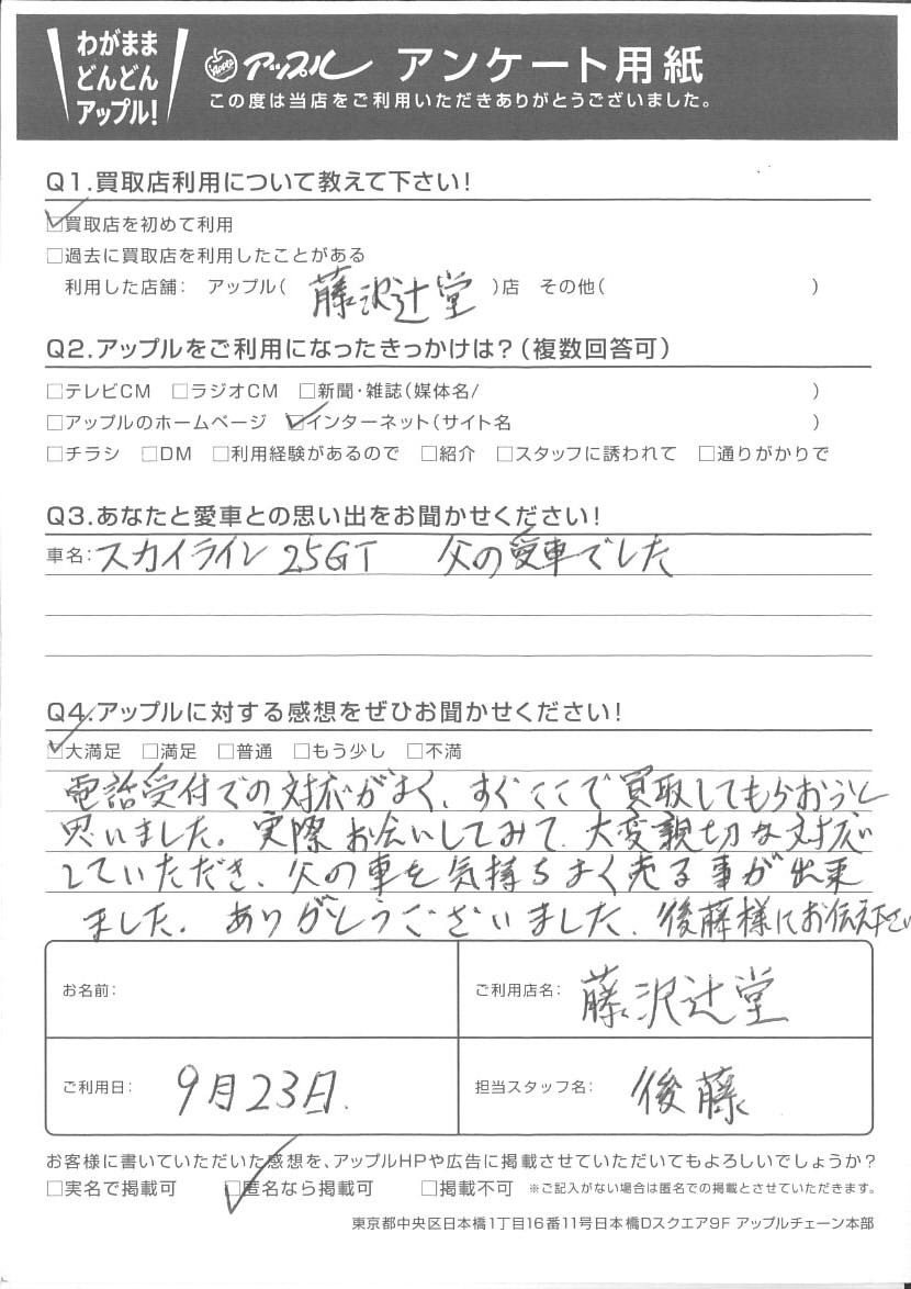 実際お会いしてみて、大変親切な対応していただき、父の車を気持ちよく