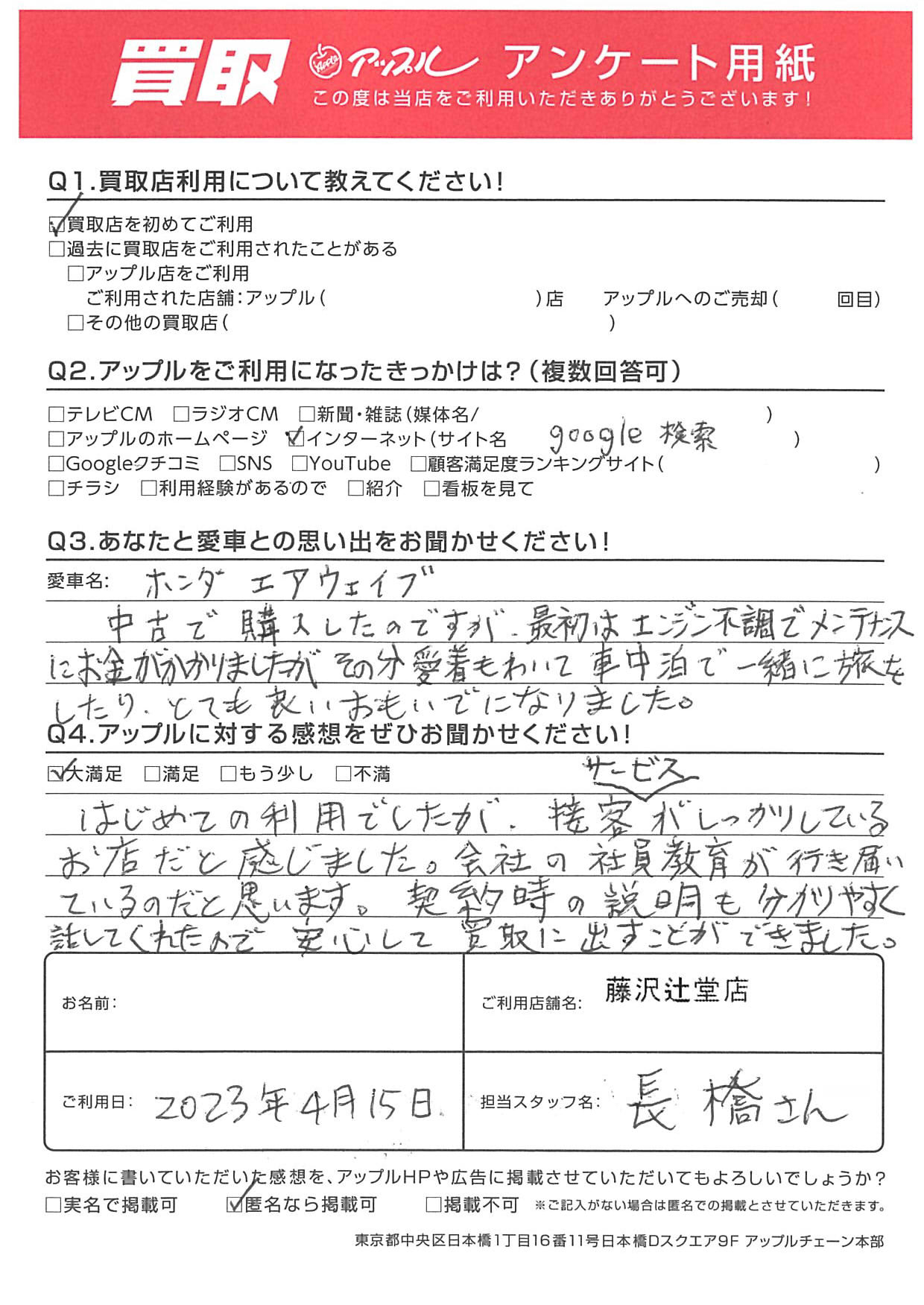 A.はじめての利用でしたが、接客サービスがしっかりしている