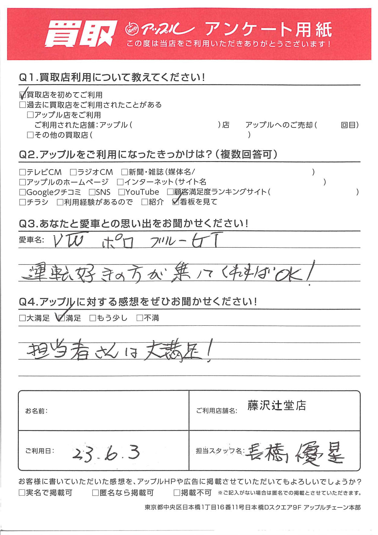 お車のご相談・ 査定だけでもOK! カンタン 入力 30秒 アップルがブランド買取始めました! お電話でも受付中! 受付時間10:00 ~ 18:30 0120-974-899 お車のご相談・ 査定だけでもOK! カンタン 入力 30秒 アップルがブランド買取始めました! お電話でも受付中! 受付時間10:00 ~ 18:30 0120-974-899 アップルがブランド買取始めました! お電話でも受付中! 受付時間10:00 ~ 18:30 0120-974-899 店舗情報 在庫車 スタッフ紹介 ブログ お客様の声 キャンペーン お得 無料査定 click お客様の声 ご記入日: 2023/06/03 H様 車名:フォルクスワーゲン ポロ Q.あなたと愛車との思い出をお聞かせください!A.運転好きの方が乗ってくれればOK!Q.アップルに対する感想をぜひお聞かせください!A.担当者さんは大満足!担当:長橋 前へ 次へ お客様の声一覧を見る