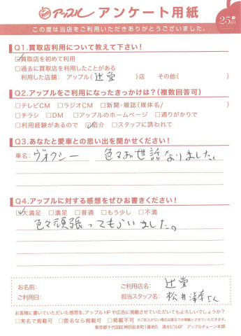 お車のご相談・ 査定だけでもOK! カンタン 入力 30秒 アップルがブランド買取始めました! お電話でも受付中! 受付時間10:00 ~ 18:30 0120-974-899 お車のご相談・ 査定だけでもOK! カンタン 入力 30秒 アップルがブランド買取始めました! お電話でも受付中! 受付時間10:00 ~ 18:30 0120-974-899 アップルがブランド買取始めました! お電話でも受付中! 受付時間10:00 ~ 18:30 0120-974-899 店舗情報 在庫車 スタッフ紹介 ブログ お客様の声 キャンペーン お得 無料査定 click お客様の声 ご記入日: 2015/03/28 F様 お車:ヴォクシーQ.愛車との思い出は? A.色々お世話になりました。Q.アップルの感想は? A.色々頑張ってもらいました。 前へ 次へ お客様の声一覧を見る