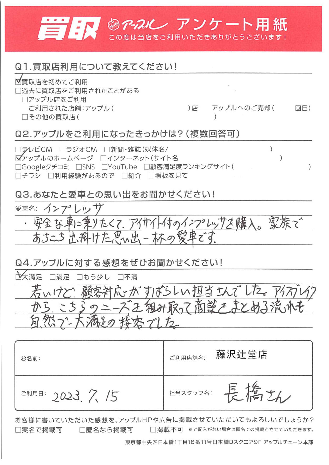 A.安全な車に乗りたくて、アイサイト付のインプレッサを購入。