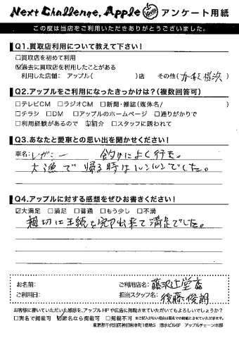 お車のご相談・ 査定だけでもOK! カンタン 入力 30秒 アップルがブランド買取始めました! お電話でも受付中! 受付時間10:00 ~ 18:30 0120-974-899 お車のご相談・ 査定だけでもOK! カンタン 入力 30秒 アップルがブランド買取始めました! お電話でも受付中! 受付時間10:00 ~ 18:30 0120-974-899 アップルがブランド買取始めました! お電話でも受付中! 受付時間10:00 ~ 18:30 0120-974-899 店舗情報 在庫車 スタッフ紹介 ブログ お客様の声 キャンペーン お得 無料査定 click お客様の声 ご記入日: 2015/05/23 匿名希望様 お車:レガシーQ.愛車との思い出は?A.釣りによく行き、大漁で帰る時はルンルンでした。Q.アップルの感想は?A.新設に手続きを完了出来て満足でした。 前へ 次へ お客様の声一覧を見る