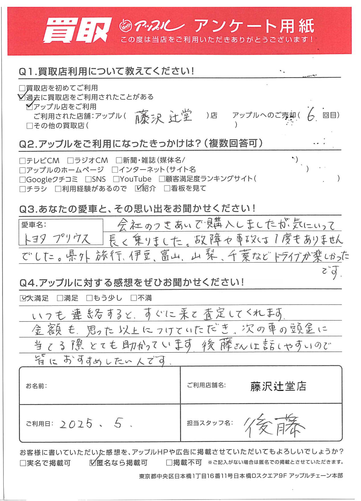 匿名希望様 車名:トヨタ プリウス(2023年3月~のPHVを含む)