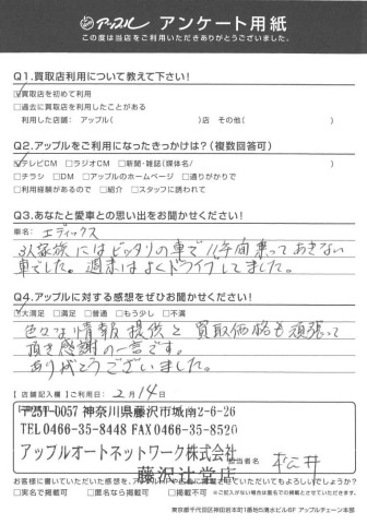 お車のご相談・ 査定だけでもOK! カンタン 入力 30秒 アップルがブランド買取始めました! お電話でも受付中! 受付時間10:00 ~ 18:30 0120-974-899 お車のご相談・ 査定だけでもOK! カンタン 入力 30秒 アップルがブランド買取始めました! お電話でも受付中! 受付時間10:00 ~ 18:30 0120-974-899 アップルがブランド買取始めました! お電話でも受付中! 受付時間10:00 ~ 18:30 0120-974-899 店舗情報 在庫車 スタッフ紹介 ブログ お客様の声 キャンペーン お得 無料査定 click お客様の声 ご記入日: 2017/01/07 T様 愛車との思い出は?3人家族にはピッタリの車で11年間乗ってあきない車でした。週末はよくドライブしてました。アップルの感想は?色々な情報提供と買取価格も頑張って頂き感謝の一言です。ありがとうございました。 前へ 次へ お客様の声一覧を見る