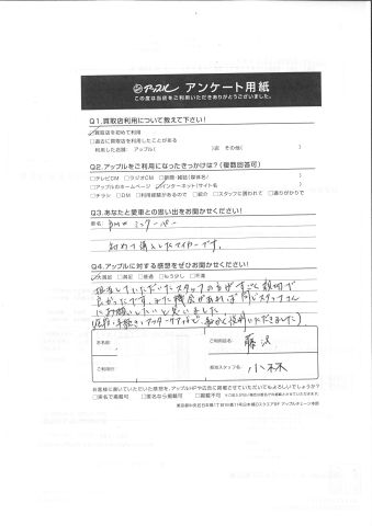 担当していただいたスタッフの方がすごく親切で良かったです。また機会があれば同じスタッフさんにお願いしたいと思いました。