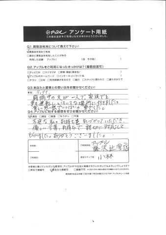不安な私の気持ちを気づかっていただき、優しい言葉、気持ちで親切に対応してもらいました。ありがとうございました。