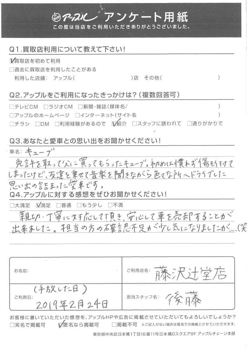 A.親切・丁寧に対応して頂き、安心して車を売却することが出来ました。