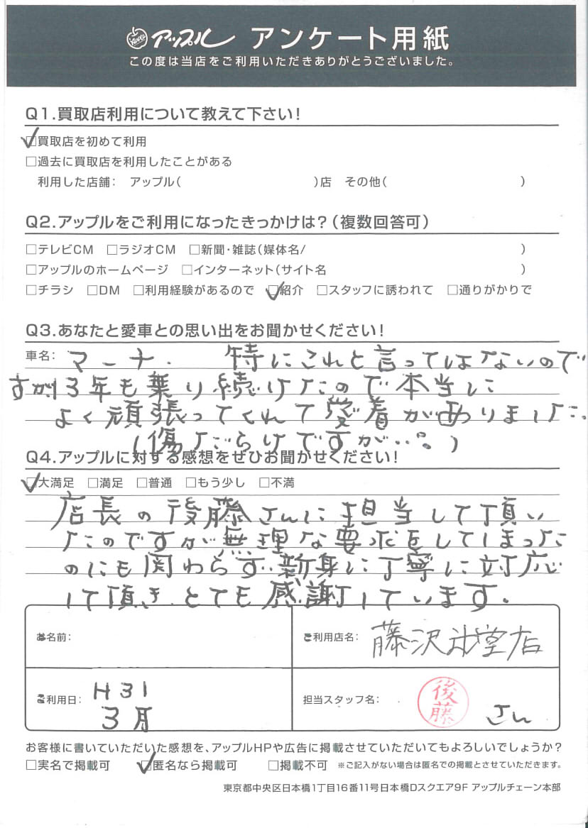 A.店長の後藤さんに担当して頂いたのですが無理な要求をしてしまったのにも