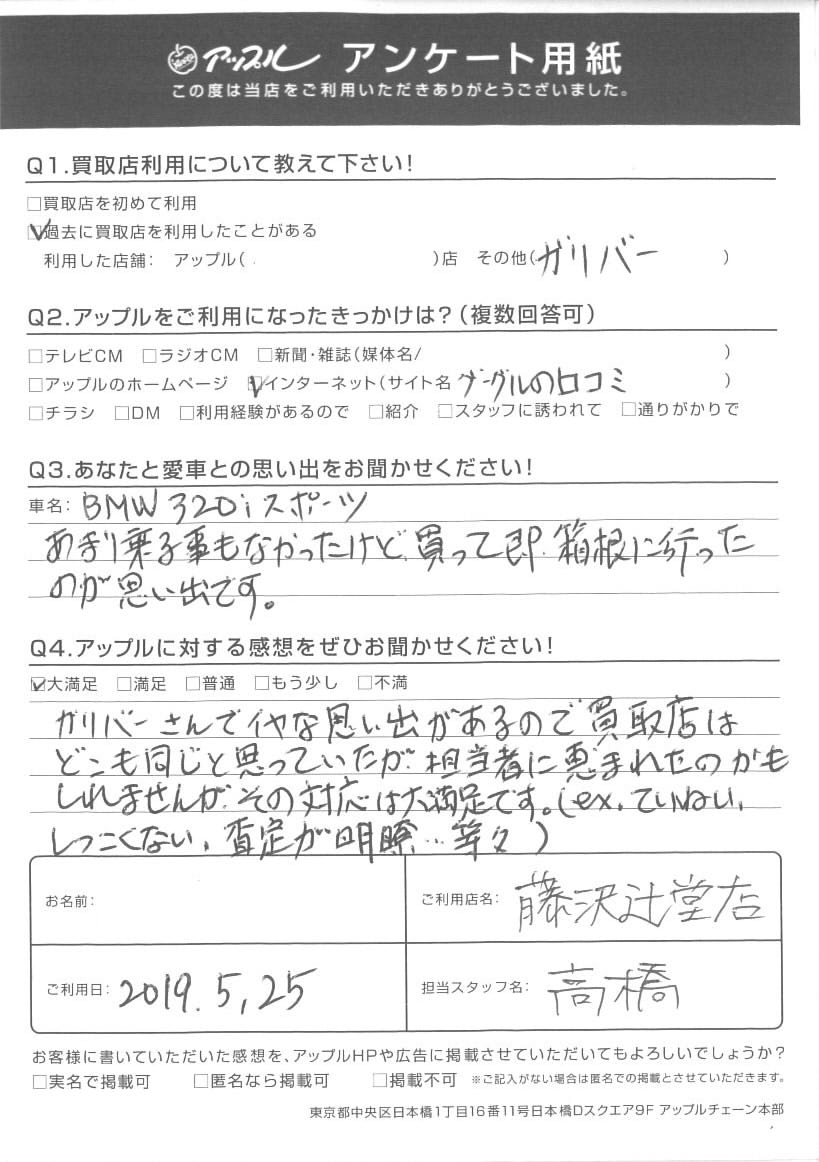 A.他社でイヤな思い出があるので買取店はどこも同じと思っていたが、