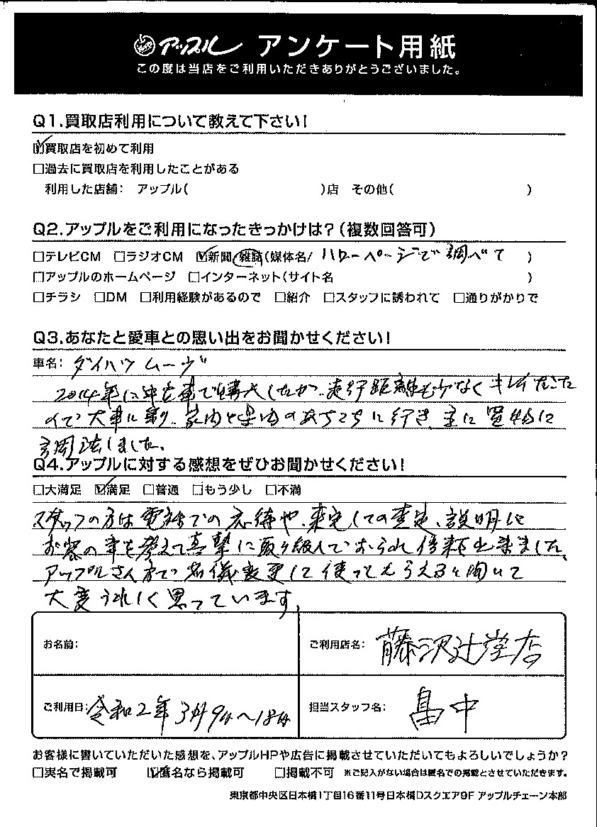匿名希望様 車名:ダイハツ ムーヴ