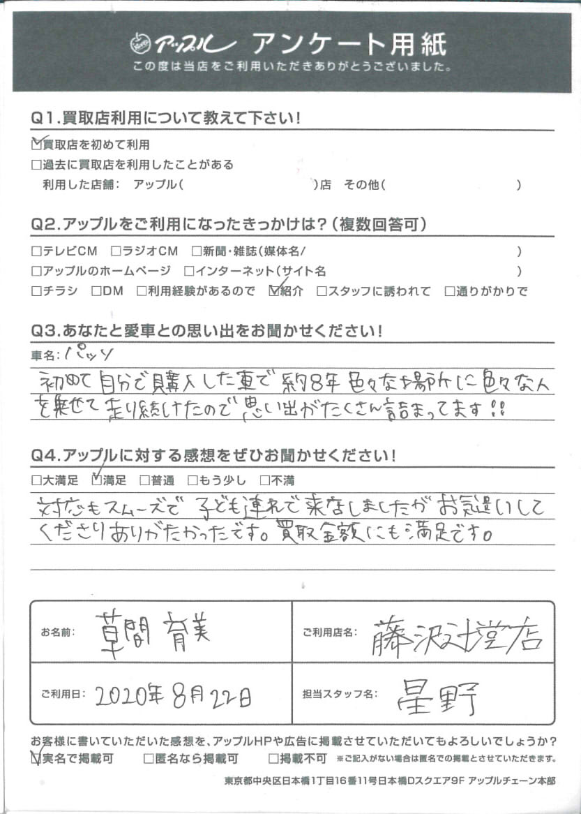草間 育美様 車名:トヨタ パッソ