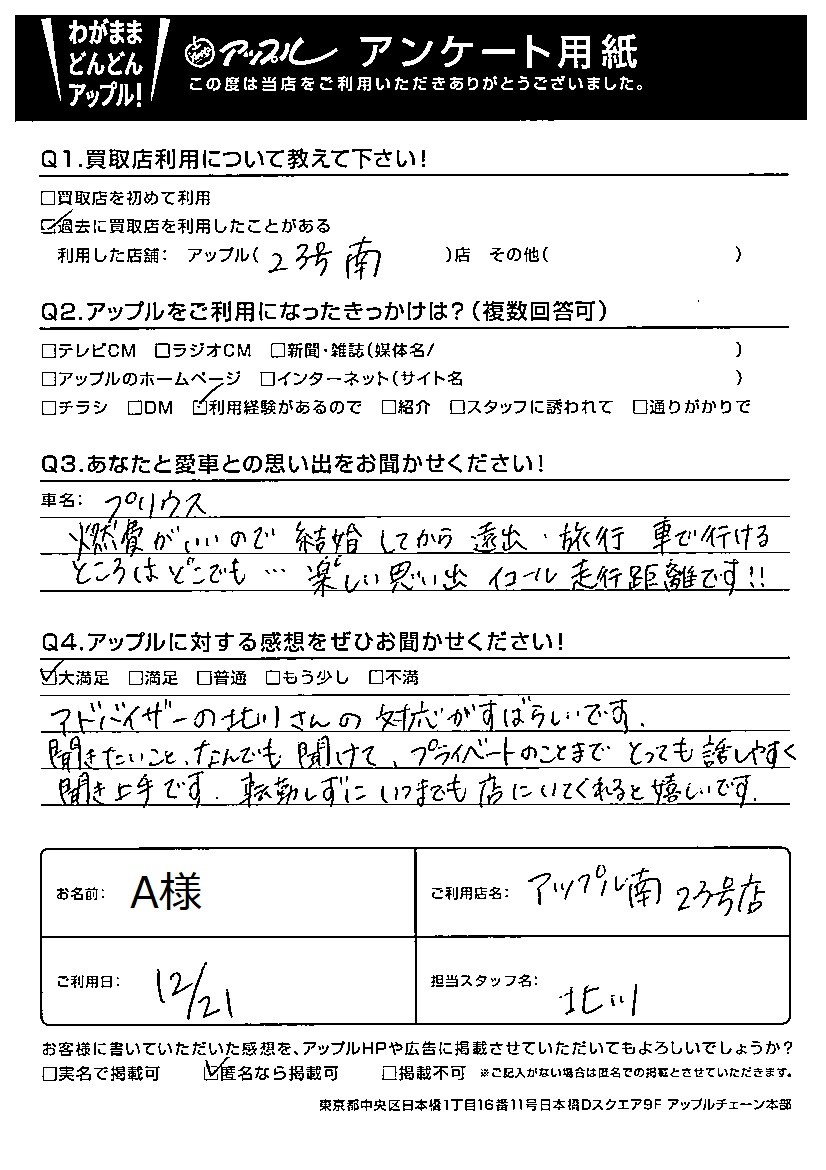 A様 車名:トヨタ プリウス(2023年3月~のPHVを含む)