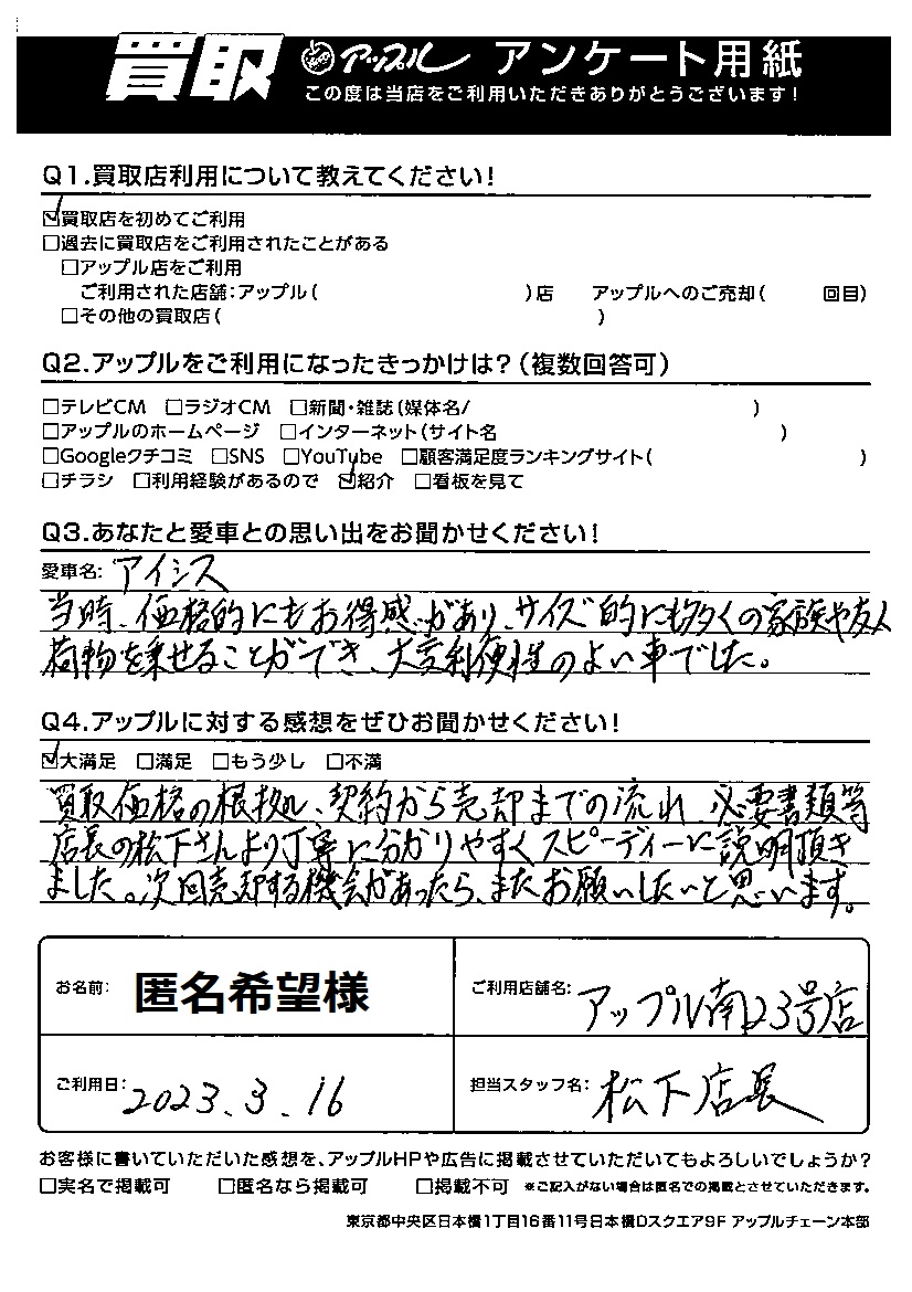 ご利用日:2023年3月16日 担当:松下