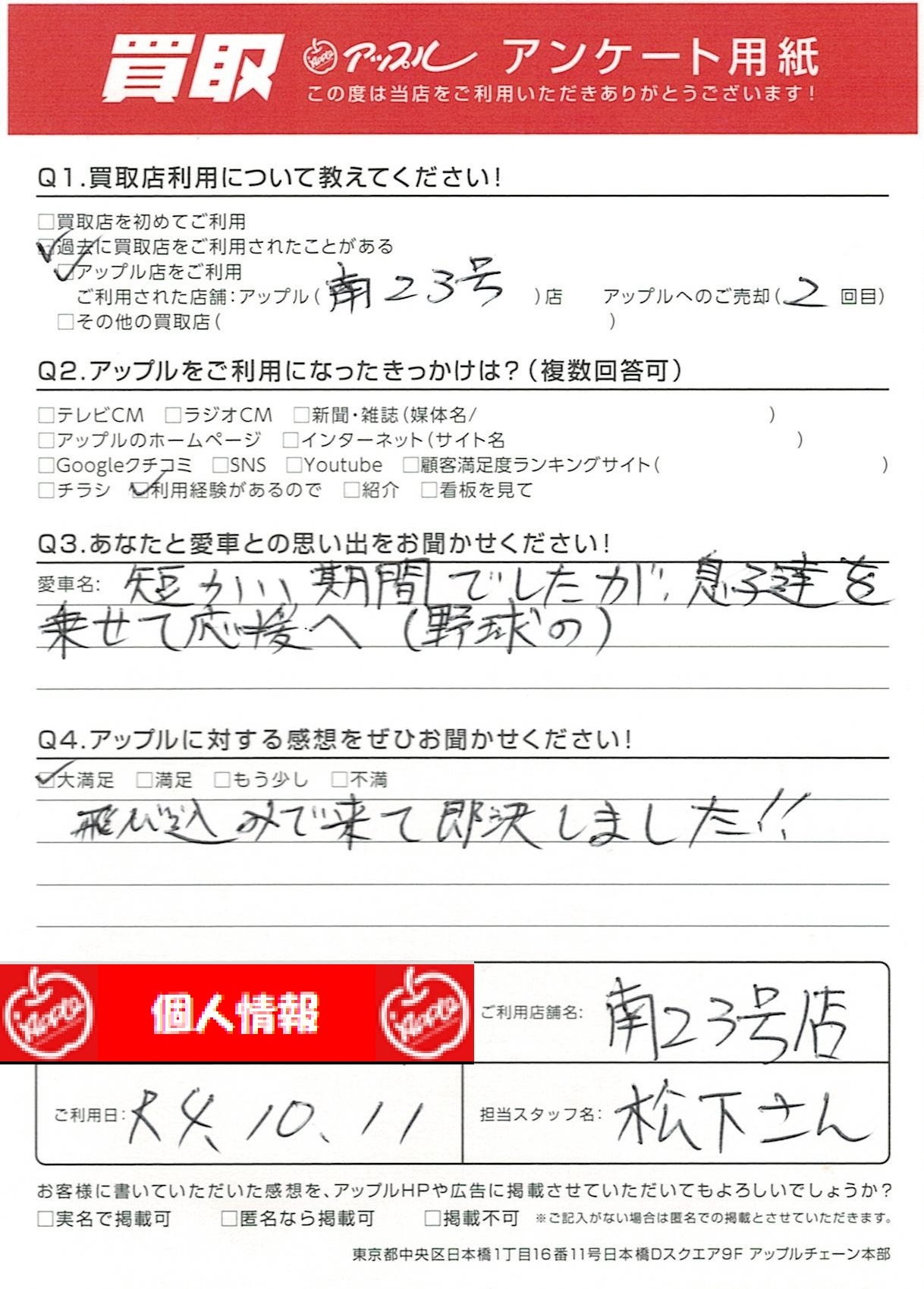 お車のご相談・ 査定だけでもOK! カンタン 入力 30秒 アップルがブランド買取始めました! お電話でも受付中! 受付時間10:00~19:00 052-619-3373 お車のご相談・ 査定だけでもOK! カンタン 入力 30秒 アップルがブランド買取始めました! お電話でも受付中! 受付時間10:00~19:00 052-619-3373 アップルがブランド買取始めました! お電話でも受付中! 受付時間10:00~19:00 052-619-3373 店舗情報 在庫車 スタッフ紹介 ブログ お客様の声 キャンペーン 無料査定 click お客様の声 ご記入日: 2022/10/11 S様 飛び込みで来て即決しました!! 前へ 次へ お客様の声一覧を見る