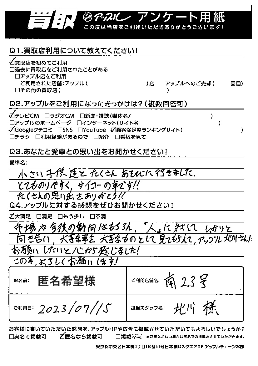 ご利用日:2023年7月15日 担当:北川