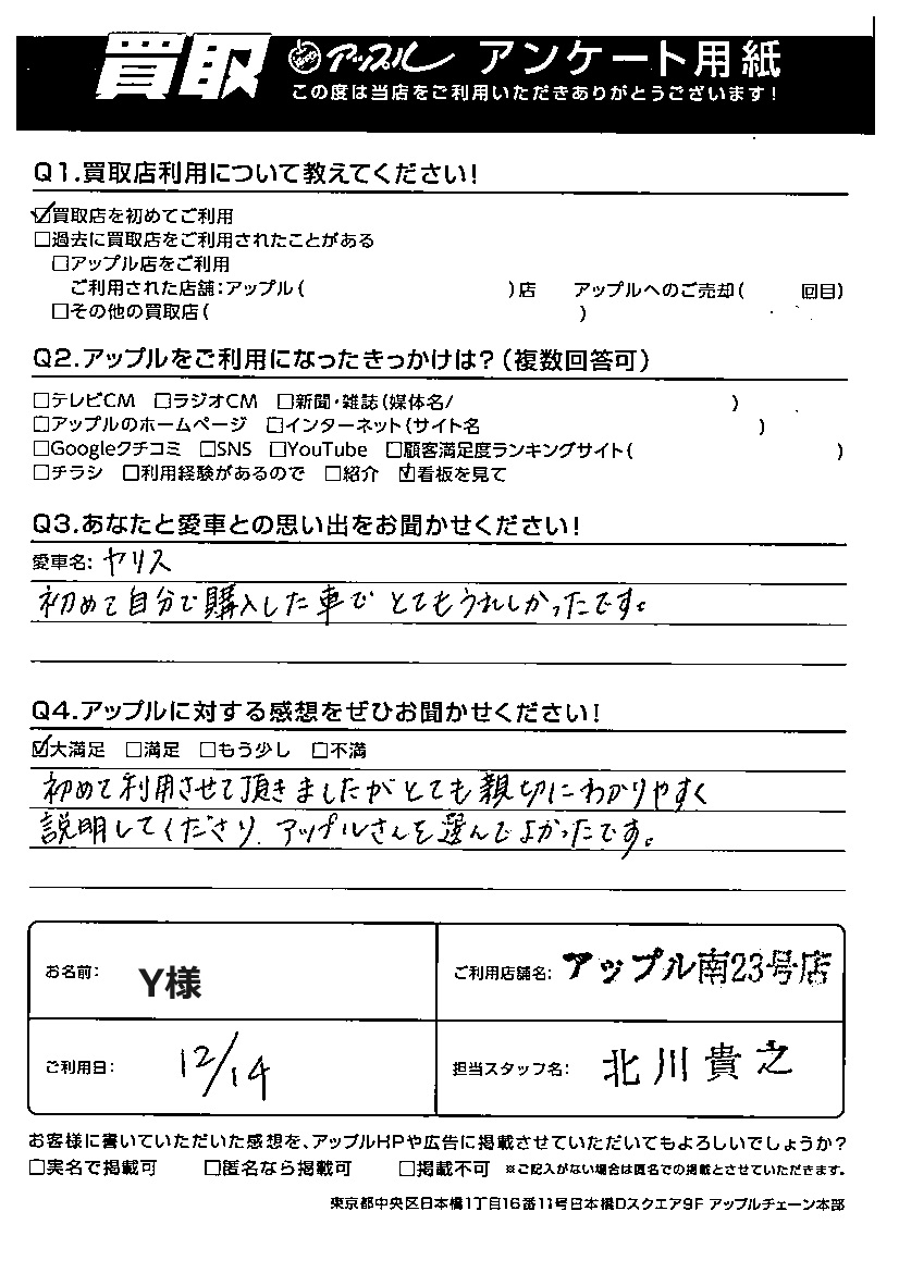 ご利用日:2023年12月14日 担当:北川 貴之