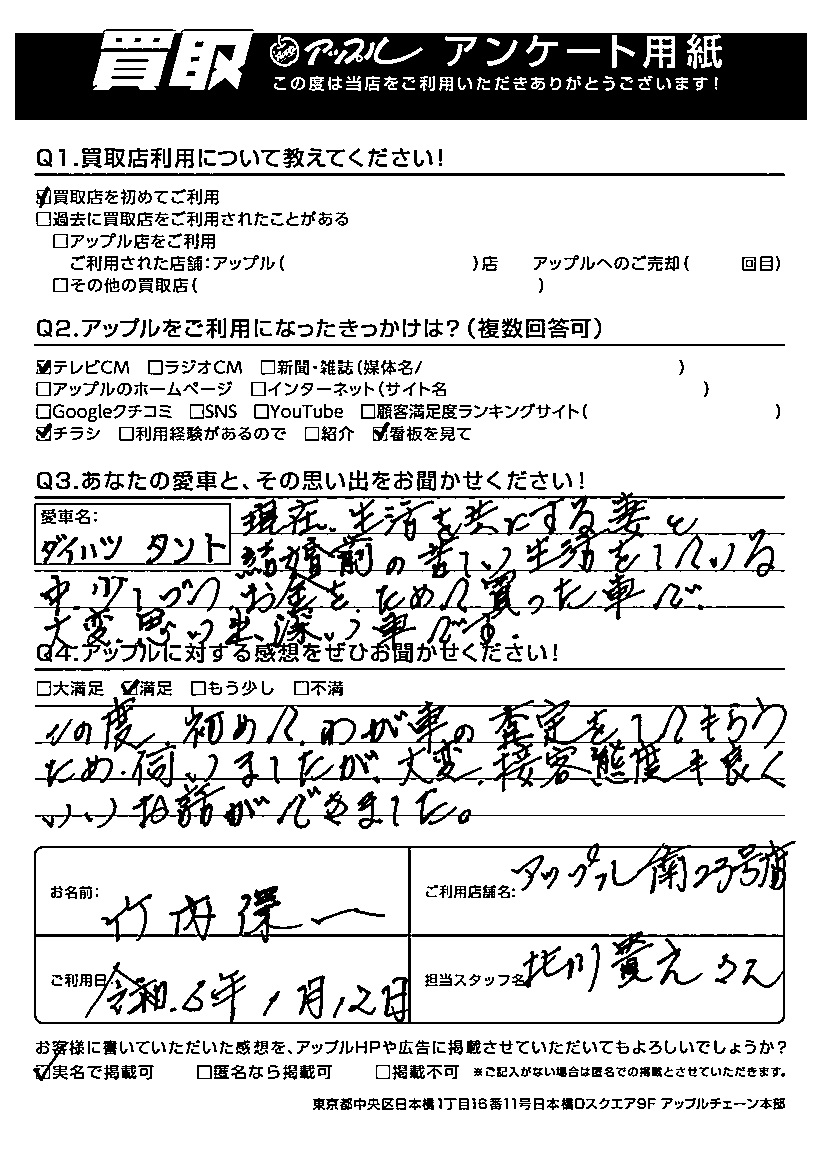 竹内様 車名:ダイハツ タント