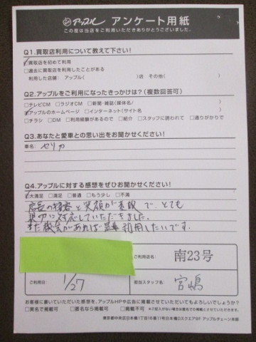 アップル南23号店コメント:ご満足頂けて私たちもとても嬉しく思います。今後ともよろしくお願い致します。