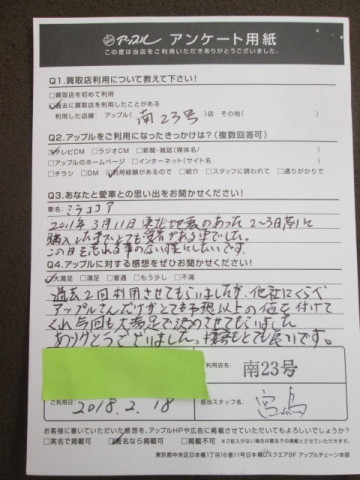 アップル南23号店コメント:この度もご利用いただきありがとうございました。金額・接客ともに満足して頂けて嬉しく思います。今後ともよろしくお願い致します。