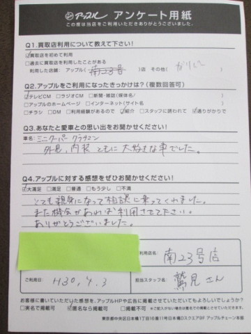 アップル南23号店コメント:ご満足いただいてとても嬉しく思います。今後もご相談お待ちしております。