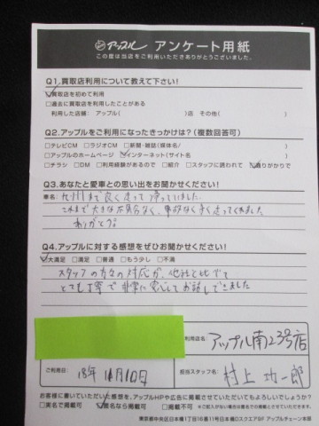 愛車との思い出:九州までよく走って帰っていました。これまで大きな不具合なく、事故なくよく走ってくれました。ありがとう!!
