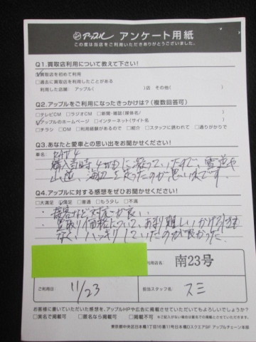 アップルに対する感想:満足。接客などの対応が良い。買取り価格についてあまり難しいかけ引きもなく、ハッキリしていたのが良かった。