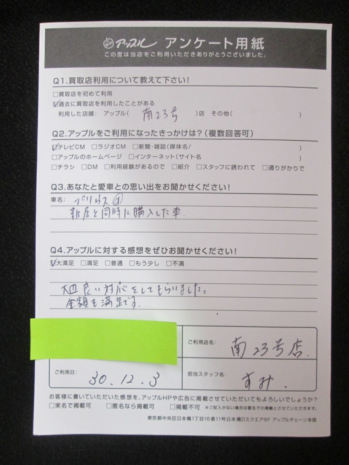 お車のご相談・ 査定だけでもOK! カンタン 入力 30秒 アップルがブランド買取始めました! お電話でも受付中! 受付時間10:00~19:00 052-619-3373 お車のご相談・ 査定だけでもOK! カンタン 入力 30秒 アップルがブランド買取始めました! お電話でも受付中! 受付時間10:00~19:00 052-619-3373 アップルがブランド買取始めました! お電話でも受付中! 受付時間10:00~19:00 052-619-3373 店舗情報 在庫車 スタッフ紹介 ブログ お客様の声 キャンペーン 無料査定 click お客様の声 ご記入日: 2018/12/03 匿名様 車名:トヨタ プリウスα 愛車:プリウスα愛車との思い出:新居と同時に購入した車。アップルに対する感想:大満足。大変良い対応をしてもらいました。金額も満足です。 前へ 次へ お客様の声一覧を見る