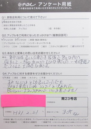 アップルに対する感想:大満足。すみさんにはとても良くしていただき初めて来店した時、ココで!と決めました。感じのいいスタッフばかりで、いいお店ですネ!