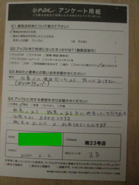 愛車との思い出:仕事での使用だったので、特にはありません。