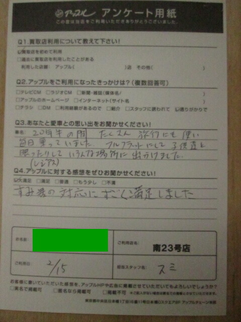 アップルに対する感想:大満足。すみ君の対応にすごく満足しました。