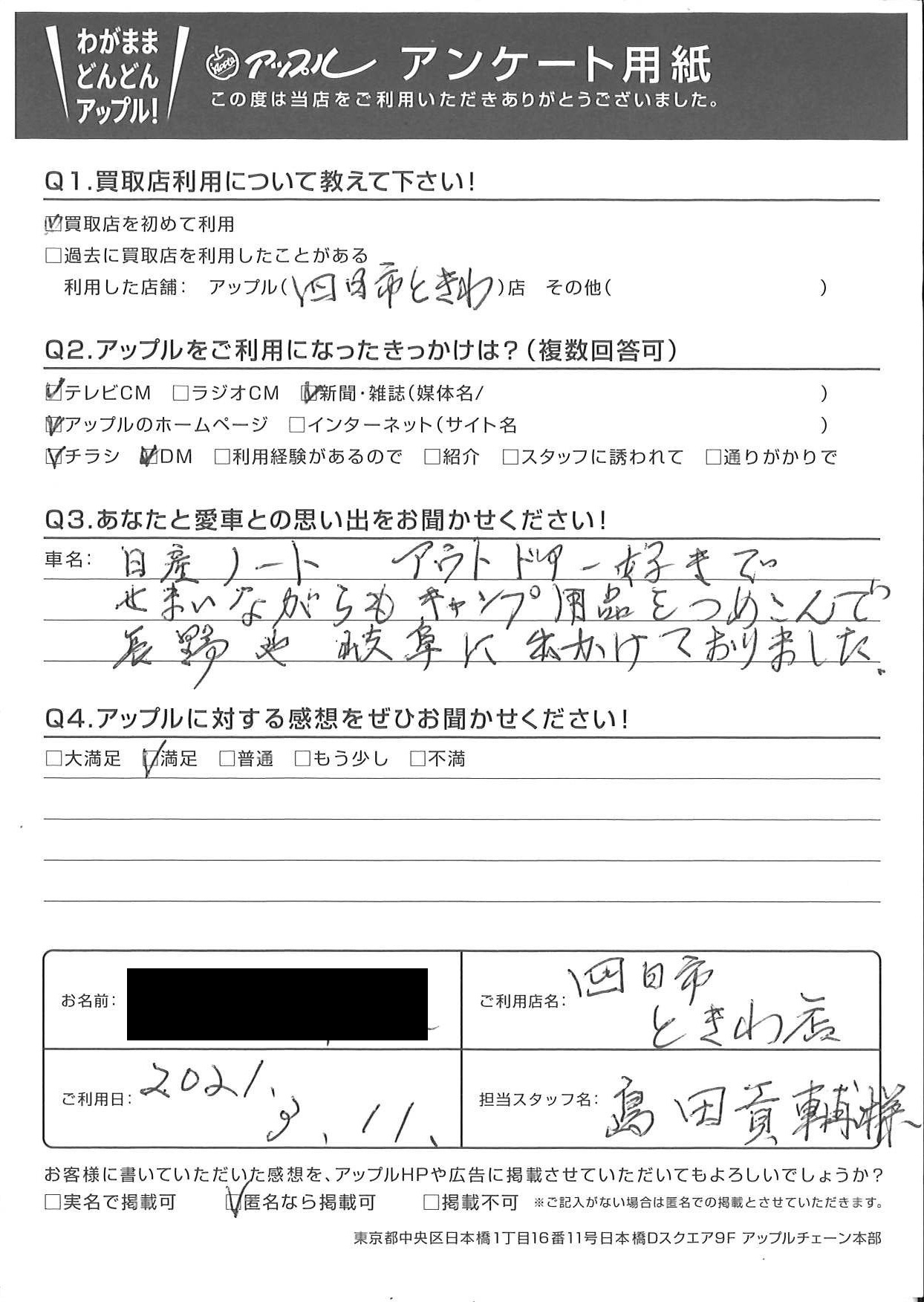 お車のご相談・ 査定だけでもOK! カンタン 入力 30秒 アップルがブランド買取始めました! お電話でも受付中! 受付時間10:00 ~ 18:30 0120-174-177 お車のご相談・ 査定だけでもOK! カンタン 入力 30秒 アップルがブランド買取始めました! お電話でも受付中! 受付時間10:00 ~ 18:30 0120-174-177 アップルがブランド買取始めました! お電話でも受付中! 受付時間10:00 ~ 18:30 0120-174-177 店舗情報 在庫車 スタッフ紹介 ブログ お客様の声 キャンペーン お得 無料査定 click お客様の声 ご記入日: 2021/03/11 M様 車名:日産 ノート アウトドアー好きでせまいながらもキャンプ用品をつめこんで長野や岐阜に出かけておりました。 前へ 次へ お客様の声一覧を見る