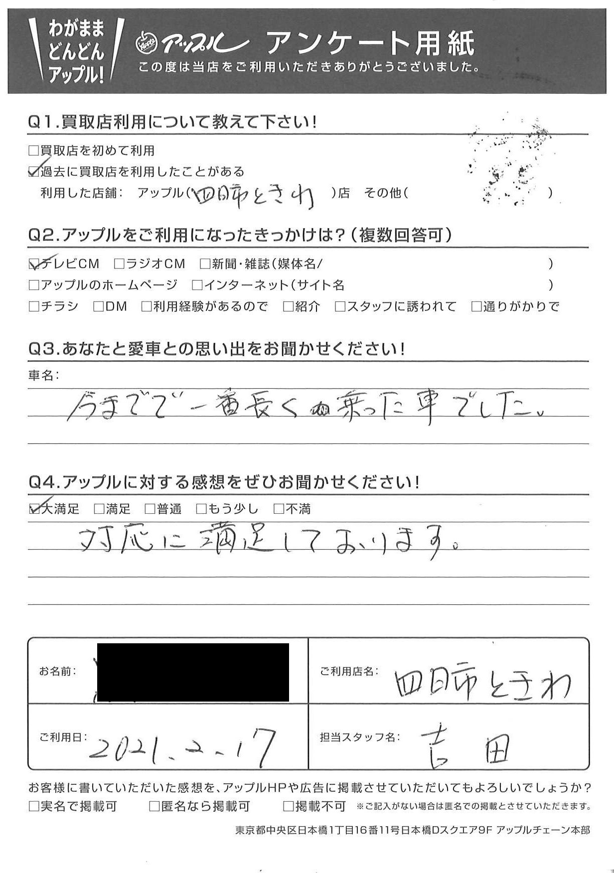 お車のご相談・ 査定だけでもOK! カンタン 入力 30秒 アップルがブランド買取始めました! お電話でも受付中! 受付時間10:00 ~ 18:30 0120-174-177 お車のご相談・ 査定だけでもOK! カンタン 入力 30秒 アップルがブランド買取始めました! お電話でも受付中! 受付時間10:00 ~ 18:30 0120-174-177 アップルがブランド買取始めました! お電話でも受付中! 受付時間10:00 ~ 18:30 0120-174-177 店舗情報 在庫車 スタッフ紹介 ブログ お客様の声 キャンペーン お得 無料査定 click お客様の声 ご記入日: 2021/02/17 K様 車名:ボルボ XC60 対応に満足しております。 前へ 次へ お客様の声一覧を見る