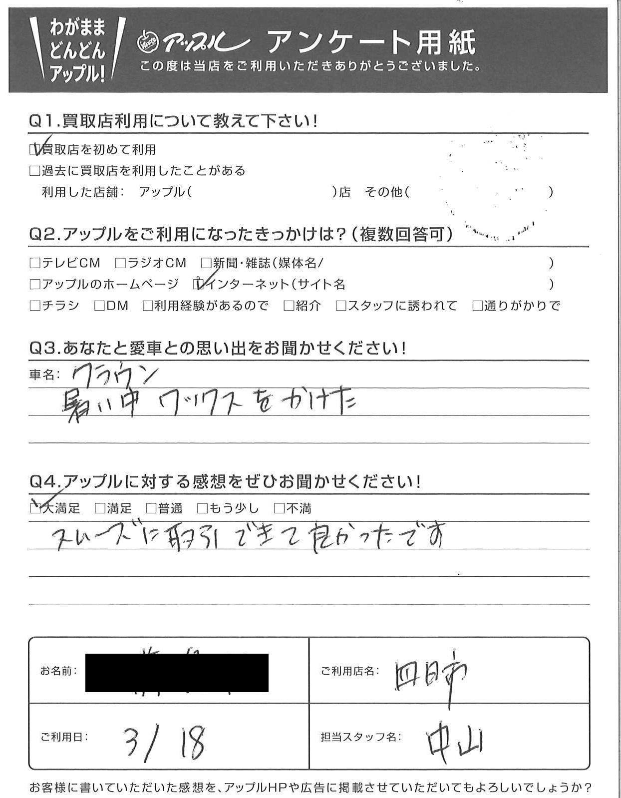 お車のご相談・ 査定だけでもOK! カンタン 入力 30秒 アップルがブランド買取始めました! お電話でも受付中! 受付時間10:00 ~ 18:30 0120-174-177 お車のご相談・ 査定だけでもOK! カンタン 入力 30秒 アップルがブランド買取始めました! お電話でも受付中! 受付時間10:00 ~ 18:30 0120-174-177 アップルがブランド買取始めました! お電話でも受付中! 受付時間10:00 ~ 18:30 0120-174-177 店舗情報 在庫車 スタッフ紹介 ブログ お客様の声 キャンペーン お得 無料査定 click お客様の声 ご記入日: 2021/03/18 K様 車名:トヨタ クラウン(~H11年8月/H30年6月~) スムーズに取引できて良かったです 前へ 次へ お客様の声一覧を見る