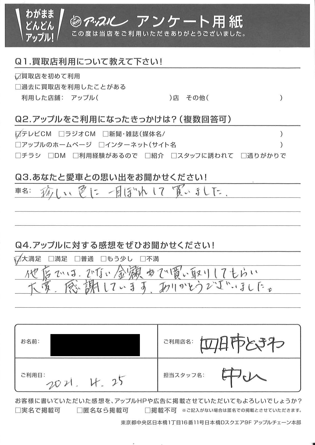 お車のご相談・ 査定だけでもOK! カンタン 入力 30秒 アップルがブランド買取始めました! お電話でも受付中! 受付時間10:00 ~ 18:30 0120-174-177 お車のご相談・ 査定だけでもOK! カンタン 入力 30秒 アップルがブランド買取始めました! お電話でも受付中! 受付時間10:00 ~ 18:30 0120-174-177 アップルがブランド買取始めました! お電話でも受付中! 受付時間10:00 ~ 18:30 0120-174-177 店舗情報 在庫車 スタッフ紹介 ブログ お客様の声 キャンペーン お得 無料査定 click お客様の声 ご記入日: 2021/04/25 Y様 車名:スバル インプレッサXV (~2017年5月) 他店ではでない金額で買い取りしてもらい大変、感謝しています。ありがとうございました。 前へ 次へ お客様の声一覧を見る