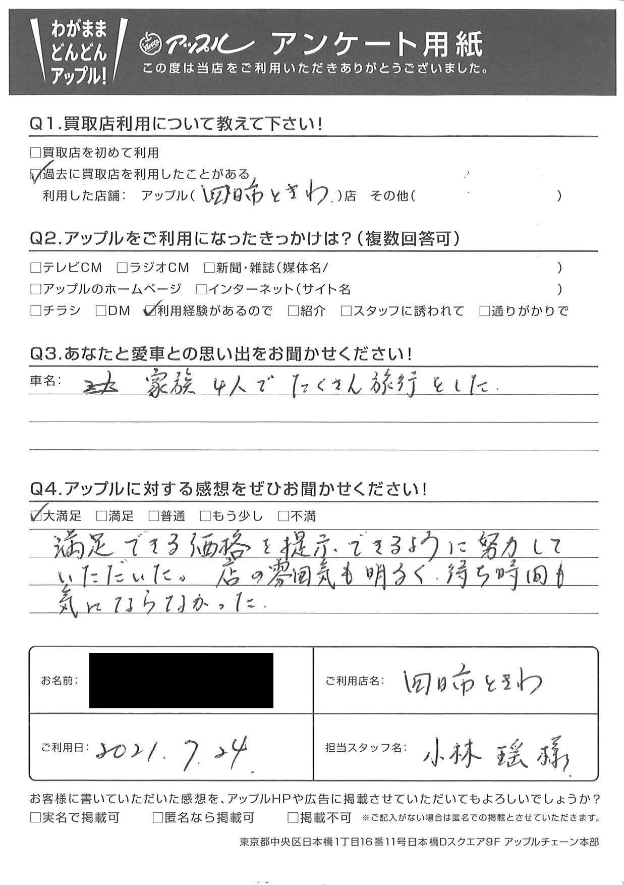 お車のご相談・ 査定だけでもOK! カンタン 入力 30秒 アップルがブランド買取始めました! お電話でも受付中! 受付時間10:00 ~ 18:30 0120-174-177 お車のご相談・ 査定だけでもOK! カンタン 入力 30秒 アップルがブランド買取始めました! お電話でも受付中! 受付時間10:00 ~ 18:30 0120-174-177 アップルがブランド買取始めました! お電話でも受付中! 受付時間10:00 ~ 18:30 0120-174-177 店舗情報 在庫車 スタッフ紹介 ブログ お客様の声 キャンペーン お得 無料査定 click お客様の声 ご記入日: 2021/07/24 H様 車名:トヨタ エスティマ 満足できる価格を提示できるように努力していただいた。店の雰囲気も明るく、待ち時間も気にならなかった。 前へ 次へ お客様の声一覧を見る