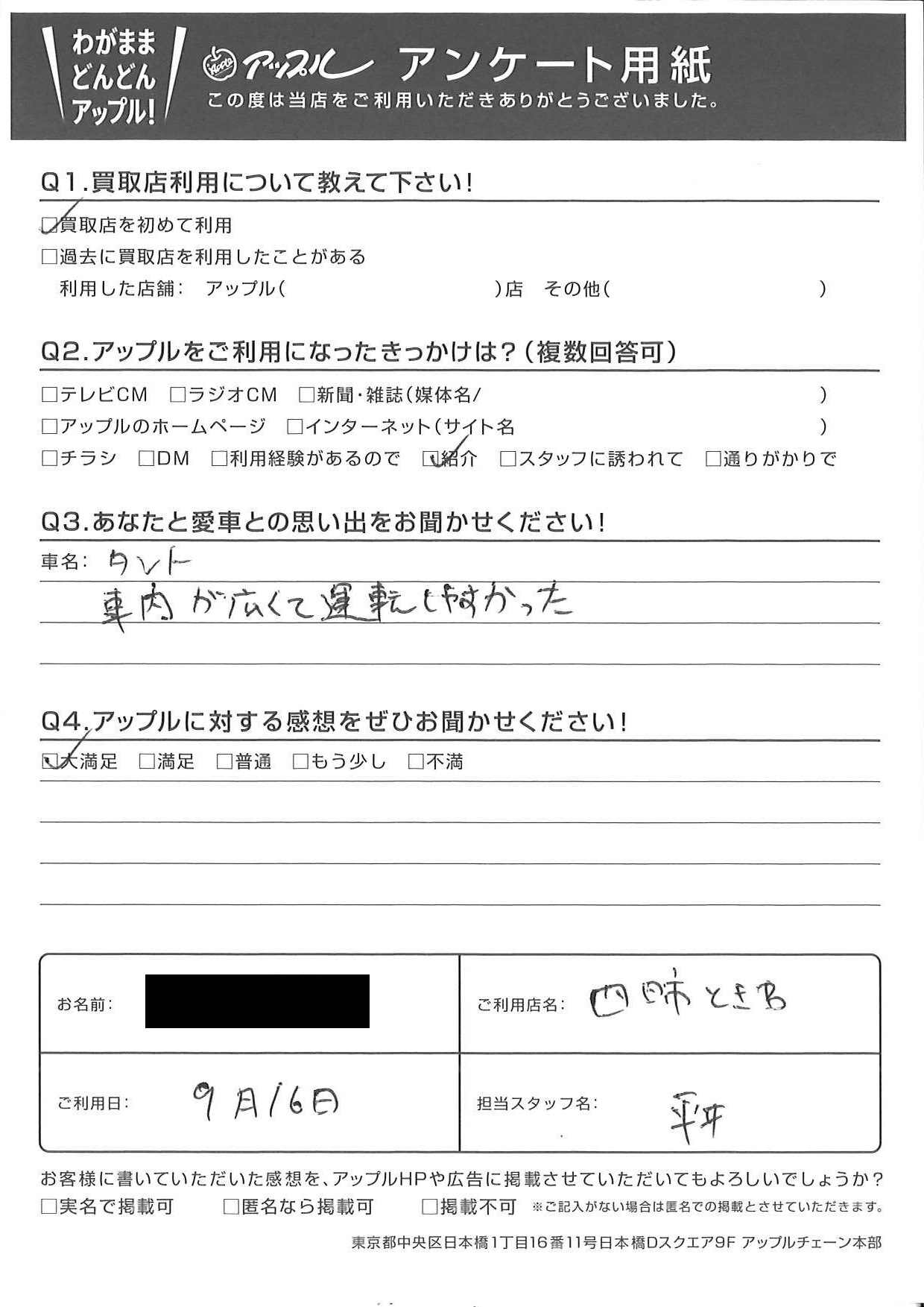 お車のご相談・ 査定だけでもOK! カンタン 入力 30秒 アップルがブランド買取始めました! お電話でも受付中! 受付時間10:00 ~ 18:30 0120-174-177 お車のご相談・ 査定だけでもOK! カンタン 入力 30秒 アップルがブランド買取始めました! お電話でも受付中! 受付時間10:00 ~ 18:30 0120-174-177 アップルがブランド買取始めました! お電話でも受付中! 受付時間10:00 ~ 18:30 0120-174-177 店舗情報 在庫車 スタッフ紹介 ブログ お客様の声 キャンペーン お得 無料査定 click お客様の声 ご記入日: 2021/10/16 Y様 車名:ダイハツ タント 車内が広くて運転しやすかった 前へ 次へ お客様の声一覧を見る