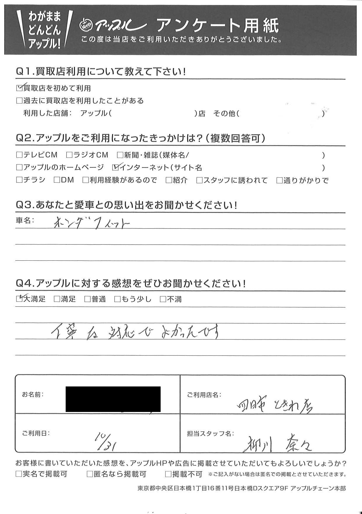お車のご相談・ 査定だけでもOK! カンタン 入力 30秒 アップルがブランド買取始めました! お電話でも受付中! 受付時間10:00 ~ 18:30 0120-174-177 お車のご相談・ 査定だけでもOK! カンタン 入力 30秒 アップルがブランド買取始めました! お電話でも受付中! 受付時間10:00 ~ 18:30 0120-174-177 アップルがブランド買取始めました! お電話でも受付中! 受付時間10:00 ~ 18:30 0120-174-177 店舗情報 在庫車 スタッフ紹介 ブログ お客様の声 キャンペーン お得 無料査定 click お客様の声 ご記入日: 2021/10/31 T様 車名:ホンダ フィット(H25年9月以降のハイブリッド含む) 丁寧な対応でよかったです 前へ 次へ お客様の声一覧を見る