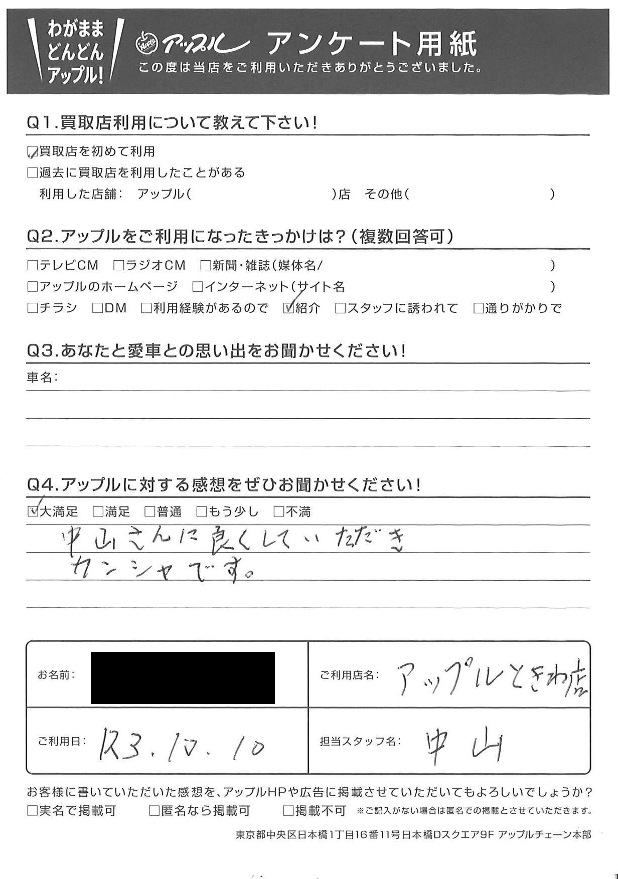 お車のご相談・ 査定だけでもOK! カンタン 入力 30秒 アップルがブランド買取始めました! お電話でも受付中! 受付時間10:00 ~ 18:30 0120-174-177 お車のご相談・ 査定だけでもOK! カンタン 入力 30秒 アップルがブランド買取始めました! お電話でも受付中! 受付時間10:00 ~ 18:30 0120-174-177 アップルがブランド買取始めました! お電話でも受付中! 受付時間10:00 ~ 18:30 0120-174-177 店舗情報 在庫車 スタッフ紹介 ブログ お客様の声 キャンペーン お得 無料査定 click お客様の声 ご記入日: 2021/10/10 E様 車名:ホンダ インサイト 中山さんに良くしていただきカンシャです。 前へ 次へ お客様の声一覧を見る