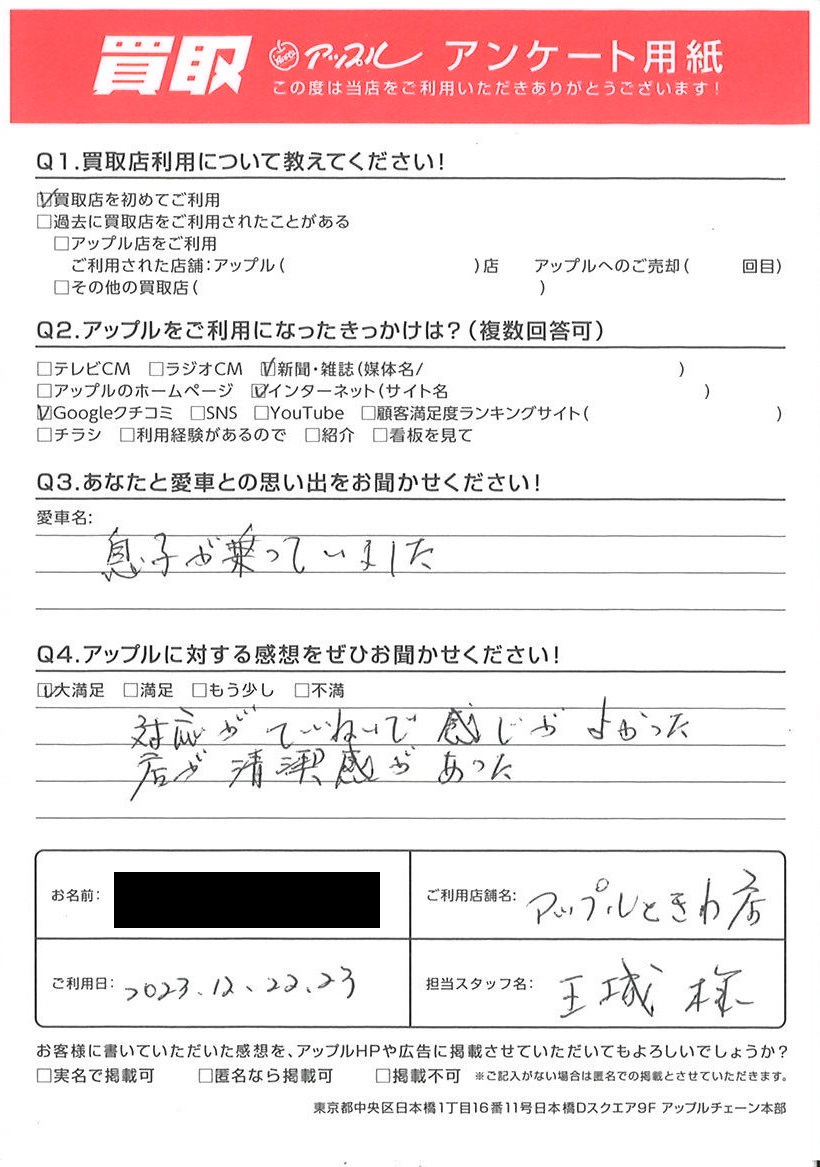 ご記入日: 2023/12/22