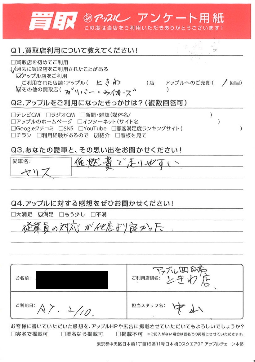 お車のご相談・ 査定だけでもOK! カンタン 入力 30秒 アップルがブランド買取始めました! お電話でも受付中! 受付時間10:00 ~ 18:30 0120-174-177 お車のご相談・ 査定だけでもOK! カンタン 入力 30秒 アップルがブランド買取始めました! お電話でも受付中! 受付時間10:00 ~ 18:30 0120-174-177 アップルがブランド買取始めました! お電話でも受付中! 受付時間10:00 ~ 18:30 0120-174-177 店舗情報 在庫車 スタッフ紹介 ブログ お客様の声 キャンペーン お得 無料査定 click お客様の声 ご記入日: 2025/02/10 K様 車名:トヨタ ヤリス 従業員の対応が他店より良かった。 前へ 次へ お客様の声一覧を見る