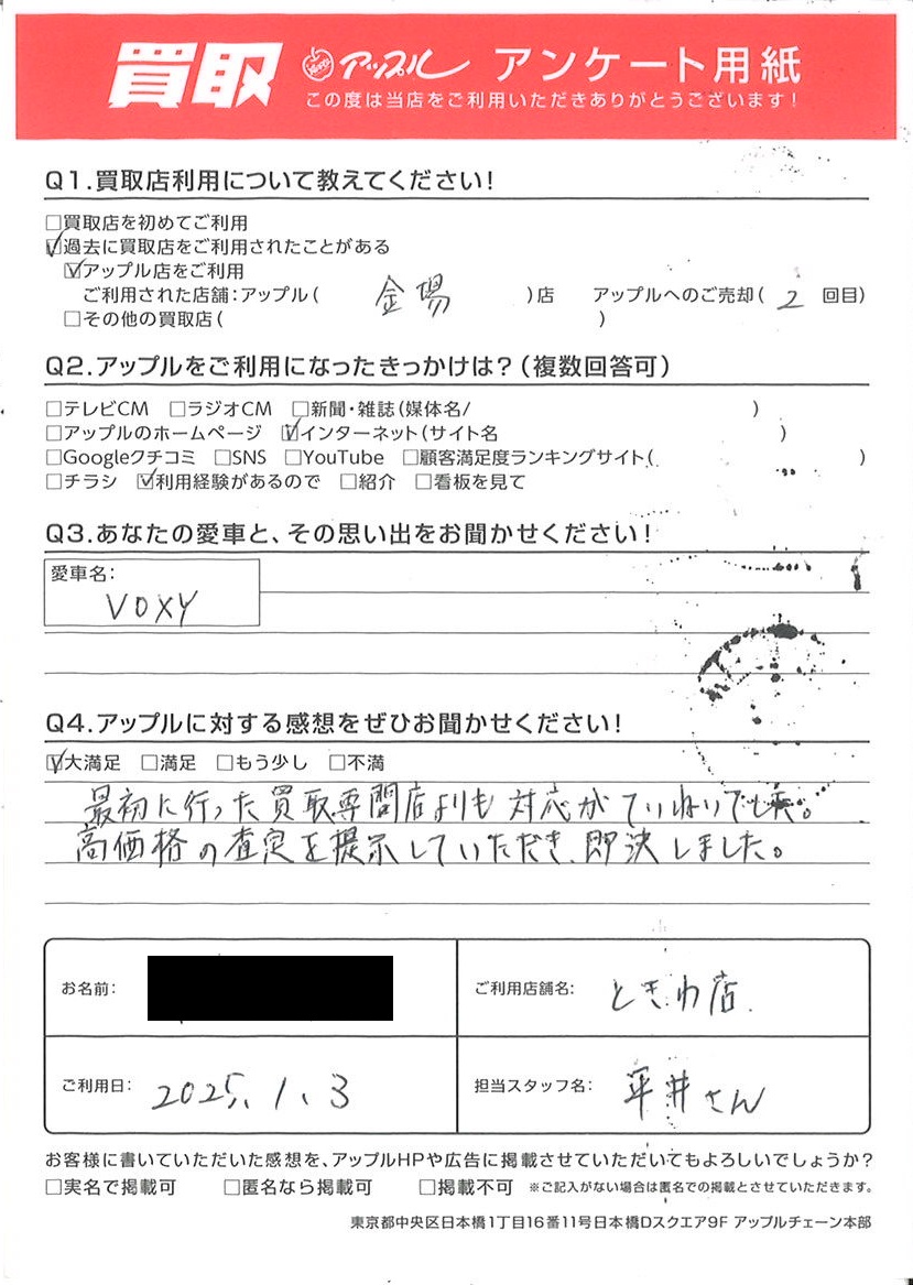 お車のご相談・ 査定だけでもOK! カンタン 入力 30秒 アップルがブランド買取始めました! お電話でも受付中! 受付時間10:00 ~ 18:30 0120-174-177 お車のご相談・ 査定だけでもOK! カンタン 入力 30秒 アップルがブランド買取始めました! お電話でも受付中! 受付時間10:00 ~ 18:30 0120-174-177 アップルがブランド買取始めました! お電話でも受付中! 受付時間10:00 ~ 18:30 0120-174-177 店舗情報 在庫車 スタッフ紹介 ブログ お客様の声 キャンペーン お得 無料査定 click お客様の声 ご記入日: 2025/01/03 H様 車名:トヨタ ヴォクシー 最初に行った買取専門店よりも対応がていねいでした。高価格の査定を提示していただき、即決しました。 前へ 次へ お客様の声一覧を見る