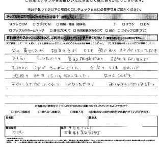 お車のご相談・ 査定だけでもOK! カンタン 入力 30秒 アップルがブランド買取始めました! お電話でも受付中! 受付時間10:00 ~ 18:30 0120-174-177 お車のご相談・ 査定だけでもOK! カンタン 入力 30秒 アップルがブランド買取始めました! お電話でも受付中! 受付時間10:00 ~ 18:30 0120-174-177 アップルがブランド買取始めました! お電話でも受付中! 受付時間10:00 ~ 18:30 0120-174-177 店舗情報 在庫車 スタッフ紹介 ブログ お客様の声 キャンペーン お得 無料査定 click お客様の声 ご記入日: 2011/06/12 菰野町 I・O様 父の車でしたが担当の方がとても感じか良く対応していただきました。思ったよりも買い取り価格がよく誕生日だったので¥3000UPでラッキーでした。お店もとてもきれいで次回も利用したいと思いました。女の人1人でもすぐに対応してくれてよかったです! ありがとうございました。 前へ 次へ お客様の声一覧を見る