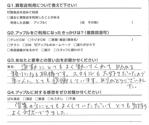 お車のご相談・ 査定だけでもOK! カンタン 入力 30秒 アップルがブランド買取始めました! お電話でも受付中! 受付時間10:00 ~ 18:30 0120-174-177 お車のご相談・ 査定だけでもOK! カンタン 入力 30秒 アップルがブランド買取始めました! お電話でも受付中! 受付時間10:00 ~ 18:30 0120-174-177 アップルがブランド買取始めました! お電話でも受付中! 受付時間10:00 ~ 18:30 0120-174-177 店舗情報 在庫車 スタッフ紹介 ブログ お客様の声 キャンペーン お得 無料査定 click お客様の声 ご記入日: 2016/02/29 匿名希望様 営業の方にとてもよくしていただいて、とても気持ちよく対応できました。担当:松嶋 前へ 次へ お客様の声一覧を見る