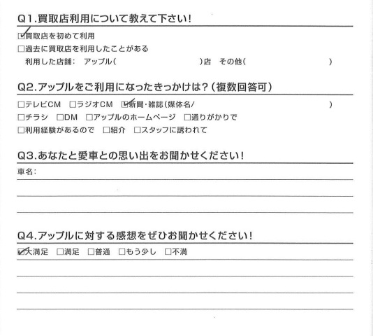 お車のご相談・ 査定だけでもOK! カンタン 入力 30秒 アップルがブランド買取始めました! お電話でも受付中! 受付時間10:00 ~ 18:30 0120-174-177 お車のご相談・ 査定だけでもOK! カンタン 入力 30秒 アップルがブランド買取始めました! お電話でも受付中! 受付時間10:00 ~ 18:30 0120-174-177 アップルがブランド買取始めました! お電話でも受付中! 受付時間10:00 ~ 18:30 0120-174-177 店舗情報 在庫車 スタッフ紹介 ブログ お客様の声 キャンペーン お得 無料査定 click お客様の声 ご記入日: 2016/03/04 K様 担当:松嶋 前へ 次へ お客様の声一覧を見る