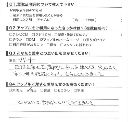 お車のご相談・ 査定だけでもOK! カンタン 入力 30秒 アップルがブランド買取始めました! お電話でも受付中! 受付時間10:00 ~ 18:30 0120-174-177 お車のご相談・ 査定だけでもOK! カンタン 入力 30秒 アップルがブランド買取始めました! お電話でも受付中! 受付時間10:00 ~ 18:30 0120-174-177 アップルがブランド買取始めました! お電話でも受付中! 受付時間10:00 ~ 18:30 0120-174-177 店舗情報 在庫車 スタッフ紹介 ブログ お客様の声 キャンペーン お得 無料査定 click お客様の声 ご記入日: 2015/03/26 I様 ていねいに説明していただきました。担当:星野 前へ 次へ お客様の声一覧を見る