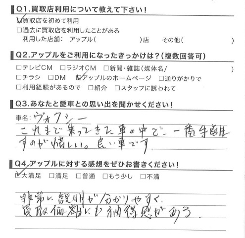 お車のご相談・ 査定だけでもOK! カンタン 入力 30秒 アップルがブランド買取始めました! お電話でも受付中! 受付時間10:00 ~ 18:30 0120-174-177 お車のご相談・ 査定だけでもOK! カンタン 入力 30秒 アップルがブランド買取始めました! お電話でも受付中! 受付時間10:00 ~ 18:30 0120-174-177 アップルがブランド買取始めました! お電話でも受付中! 受付時間10:00 ~ 18:30 0120-174-177 店舗情報 在庫車 スタッフ紹介 ブログ お客様の声 キャンペーン お得 無料査定 click お客様の声 ご記入日: 2015/03/19 匿名希望様 非常に説明が分かりやすく買取価格にも納得感がある 前へ 次へ お客様の声一覧を見る