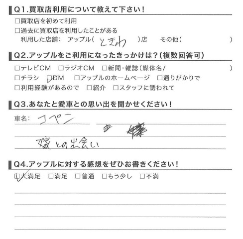 お車のご相談・ 査定だけでもOK! カンタン 入力 30秒 アップルがブランド買取始めました! お電話でも受付中! 受付時間10:00 ~ 18:30 0120-174-177 お車のご相談・ 査定だけでもOK! カンタン 入力 30秒 アップルがブランド買取始めました! お電話でも受付中! 受付時間10:00 ~ 18:30 0120-174-177 アップルがブランド買取始めました! お電話でも受付中! 受付時間10:00 ~ 18:30 0120-174-177 店舗情報 在庫車 スタッフ紹介 ブログ お客様の声 キャンペーン お得 無料査定 click お客様の声 ご記入日: 2015/03/23 K様 担当:武田 前へ 次へ お客様の声一覧を見る