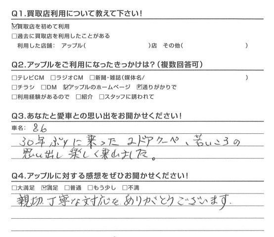 お車のご相談・ 査定だけでもOK! カンタン 入力 30秒 アップルがブランド買取始めました! お電話でも受付中! 受付時間10:00 ~ 18:30 0120-174-177 お車のご相談・ 査定だけでもOK! カンタン 入力 30秒 アップルがブランド買取始めました! お電話でも受付中! 受付時間10:00 ~ 18:30 0120-174-177 アップルがブランド買取始めました! お電話でも受付中! 受付時間10:00 ~ 18:30 0120-174-177 店舗情報 在庫車 スタッフ紹介 ブログ お客様の声 キャンペーン お得 無料査定 click お客様の声 ご記入日: 2016/02/29 K様 親切、丁寧な対応をありがとうございます。担当:倉本 前へ 次へ お客様の声一覧を見る