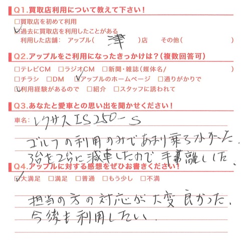 お車のご相談・ 査定だけでもOK! カンタン 入力 30秒 アップルがブランド買取始めました! お電話でも受付中! 受付時間10:00 ~ 18:30 0120-174-177 お車のご相談・ 査定だけでもOK! カンタン 入力 30秒 アップルがブランド買取始めました! お電話でも受付中! 受付時間10:00 ~ 18:30 0120-174-177 アップルがブランド買取始めました! お電話でも受付中! 受付時間10:00 ~ 18:30 0120-174-177 店舗情報 在庫車 スタッフ紹介 ブログ お客様の声 キャンペーン お得 無料査定 click お客様の声 ご記入日: 2014/12/06 K様 担当の方の対応が大変良かった。今後も利用したい。担当:鈴木 前へ 次へ お客様の声一覧を見る