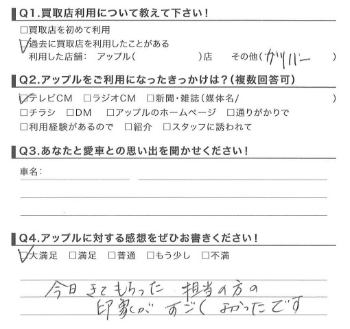 お車のご相談・ 査定だけでもOK! カンタン 入力 30秒 アップルがブランド買取始めました! お電話でも受付中! 受付時間10:00 ~ 18:30 0120-174-177 お車のご相談・ 査定だけでもOK! カンタン 入力 30秒 アップルがブランド買取始めました! お電話でも受付中! 受付時間10:00 ~ 18:30 0120-174-177 アップルがブランド買取始めました! お電話でも受付中! 受付時間10:00 ~ 18:30 0120-174-177 店舗情報 在庫車 スタッフ紹介 ブログ お客様の声 キャンペーン お得 無料査定 click お客様の声 ご記入日: 2015/01/18 N様 今日きてもらった担当の方の印象がすごくよかったです。担当:西脇 前へ 次へ お客様の声一覧を見る